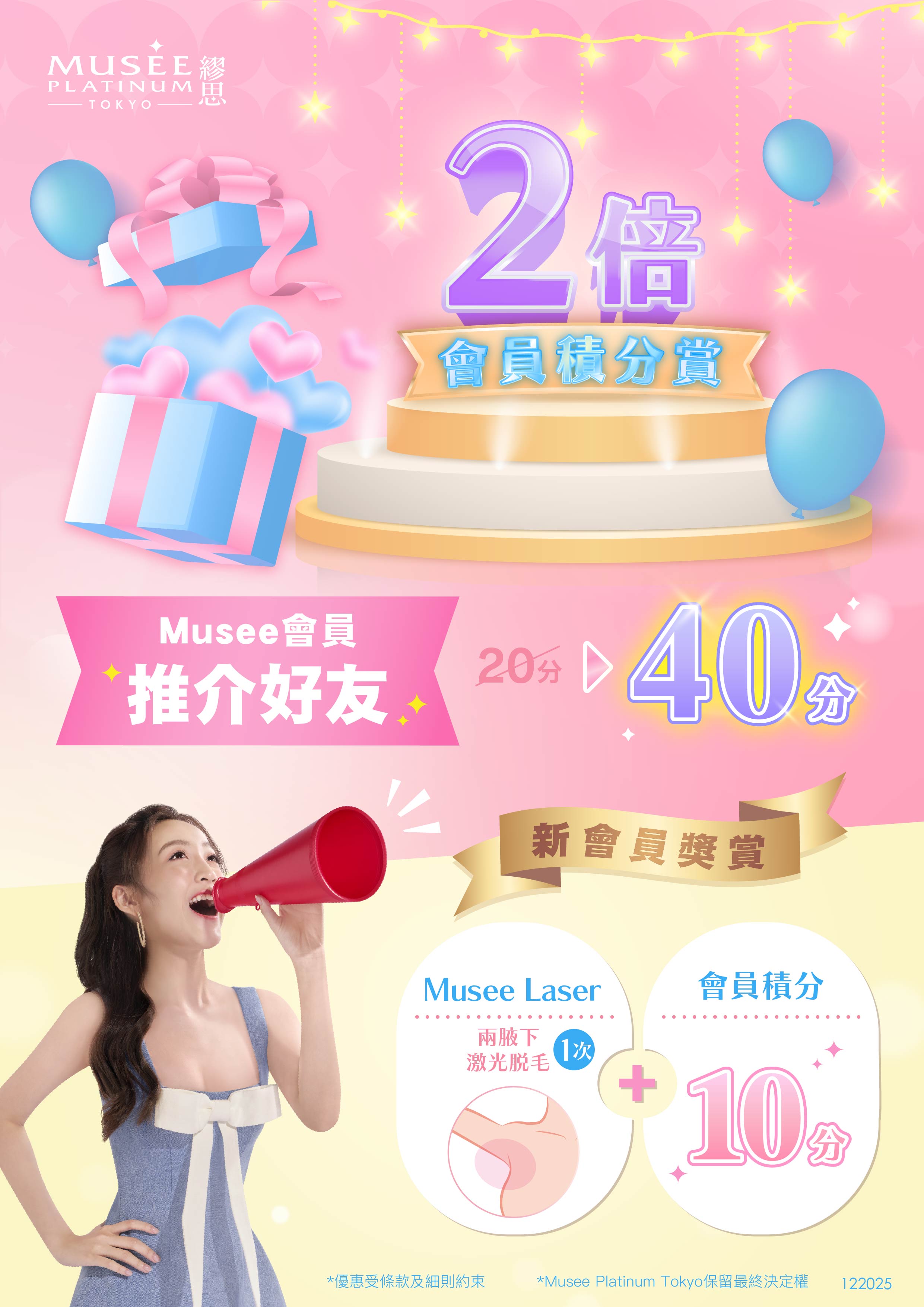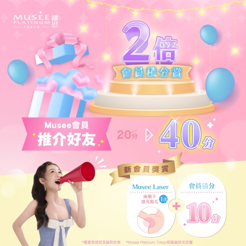 Musee Platinum Tokyo 現有會員只要介紹1位新會員,即可獲得雙倍積分!